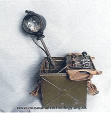 It had a ground spike but the lamp was generally used on a tripod. Equipped with morse key and powered by eight 1·5v batteries, the lamp itself had a glass front, fitted with a 10v bulb seated on a spring with a glass reflector at the rear. The lamp had a sighting tube with a small aperture at one end and crossed slots at the other which we used for alignment purposes. Three coloured disks were available to be used according to conditions; amber when fog, green for snow conditions, red to either distinguish the identity of your station or to make your signals distinctive during artillery bombardment. A perforated screen could be used to cut down the spread of the beam during darkness. |